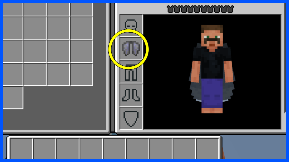 • 背中のチェストプレート枠にエリトラを装備