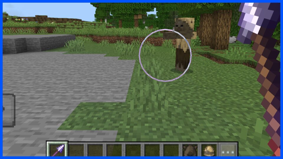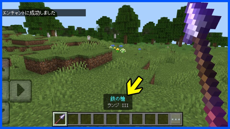 - 槍を手に持つ:エンチャント対象の槍を手に持ちます。
