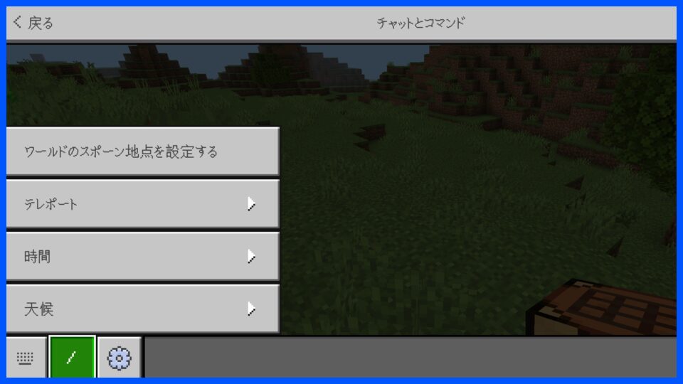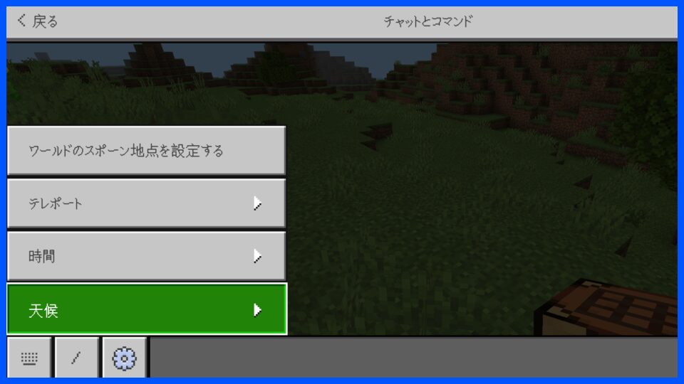 - 統合版はチャット欄のボタンで簡単に天気変更