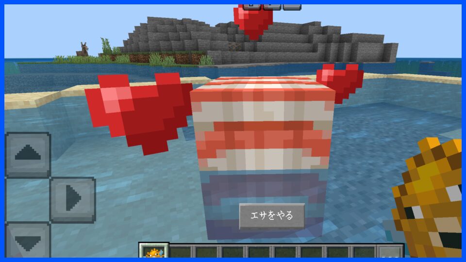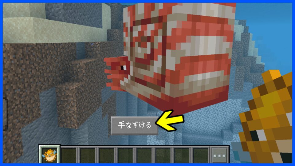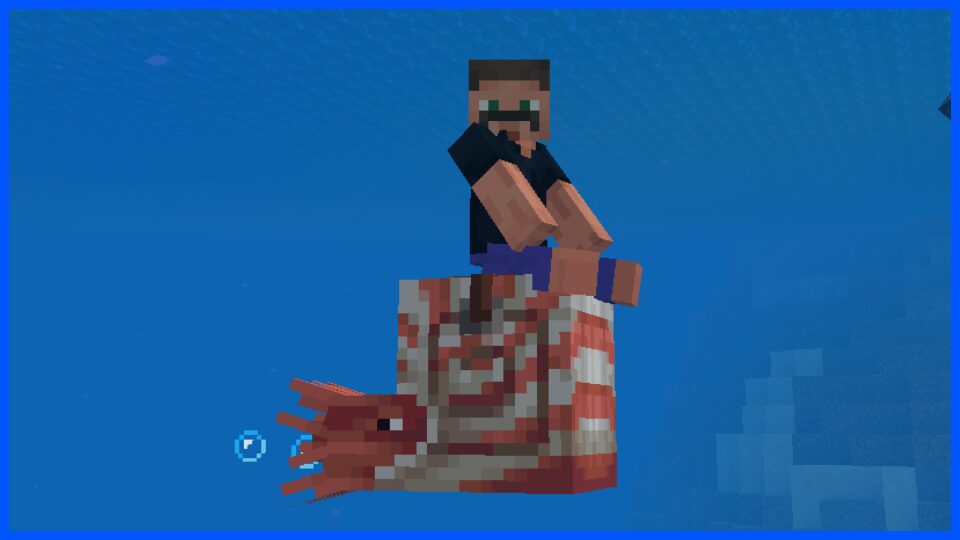 - 騎乗可能:フグを与えて懐かせ、サドルを装備すると水中で乗れる